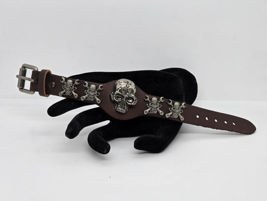 Brown Adjustable Leather Skull Motor Wrench UNISEX Bracelet (sku8326)