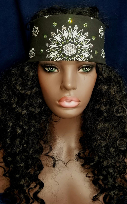 All our Bandanas are created with glass crystals,each one is hand laid.