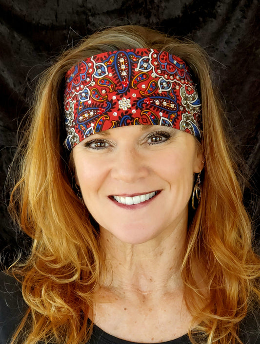 Red Indian Bandana with Clear, Blue and Red Crystals (Sku1200)