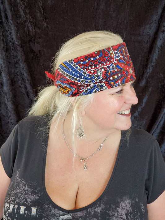 Red Indian Bandana with Clear, Blue and Red Crystals (Sku1200)