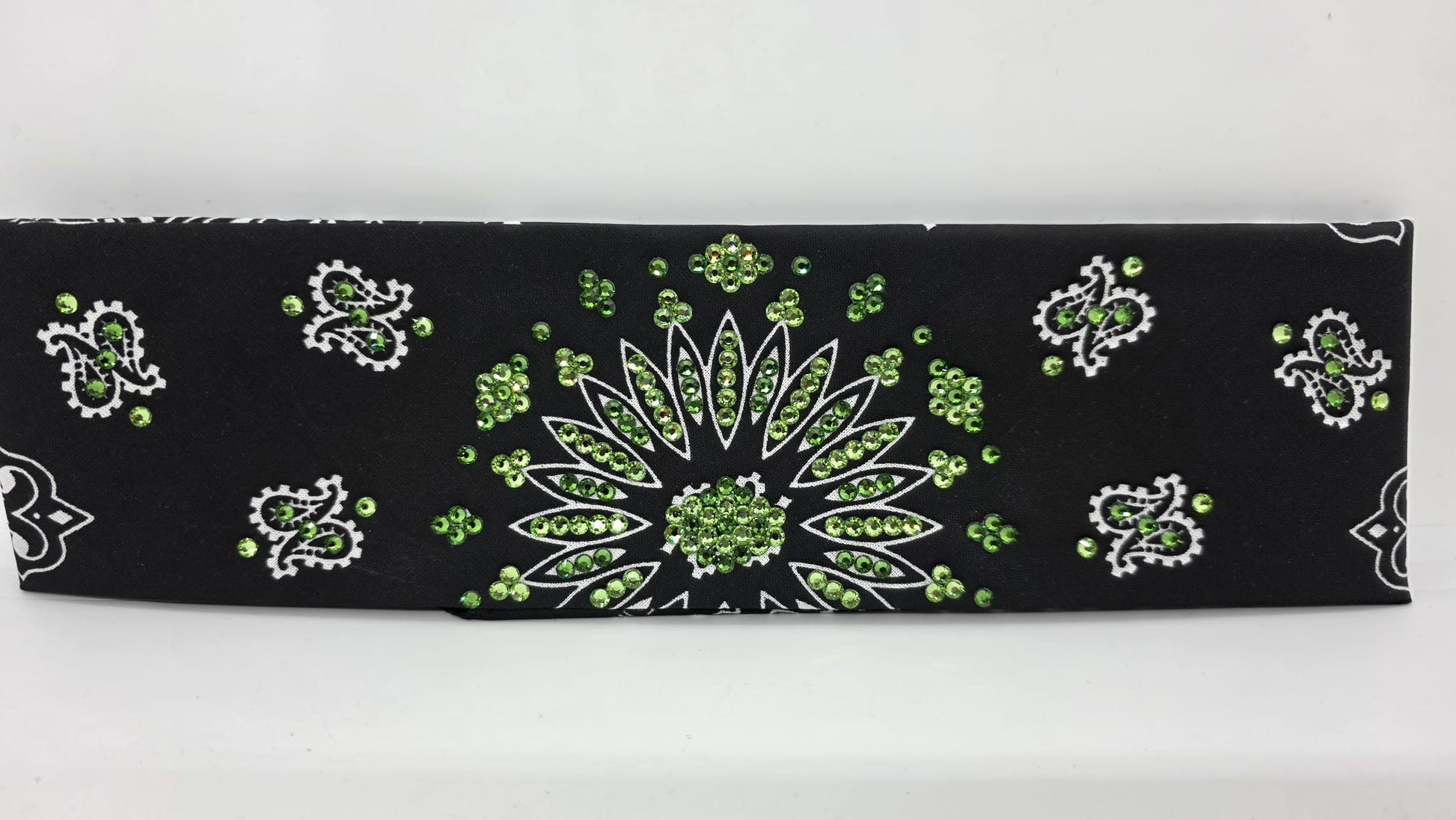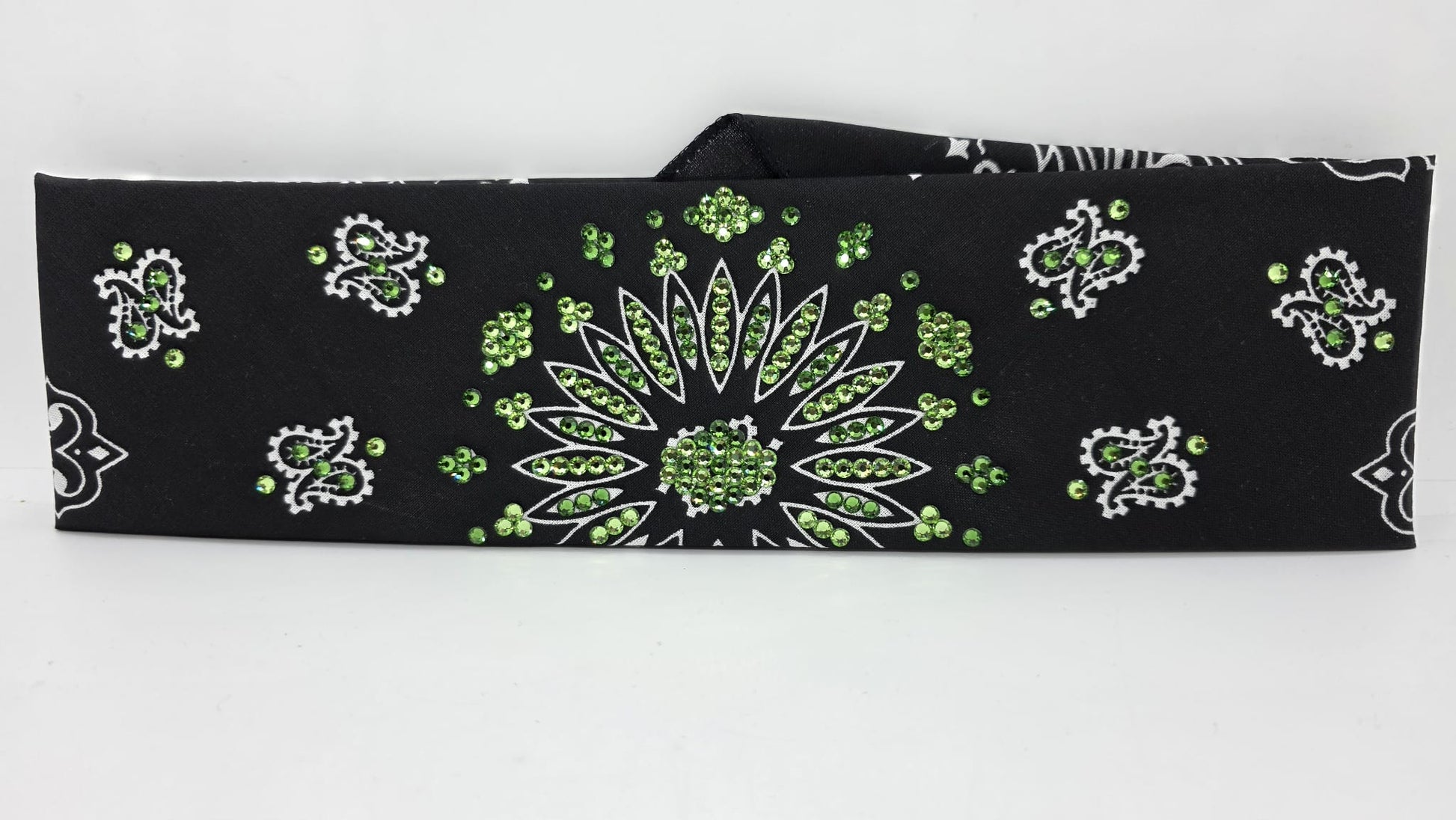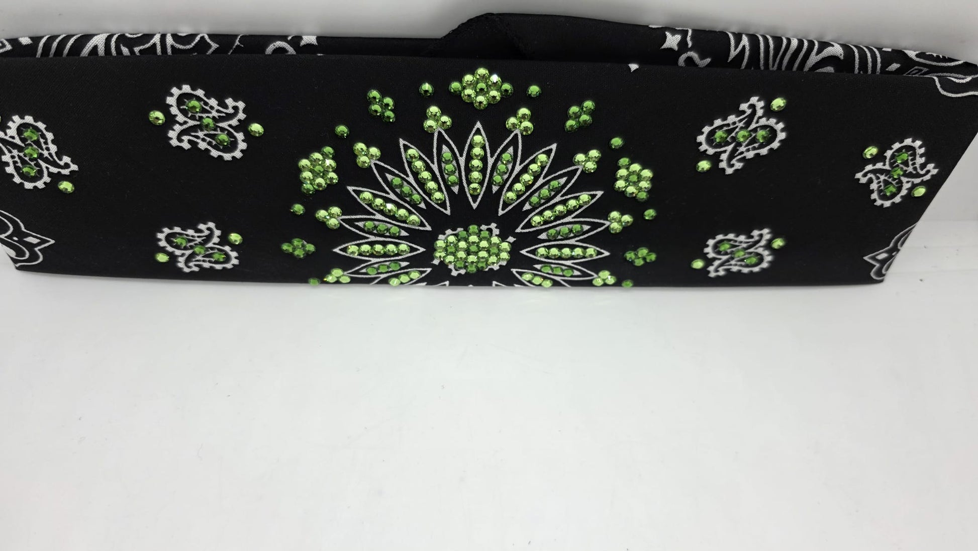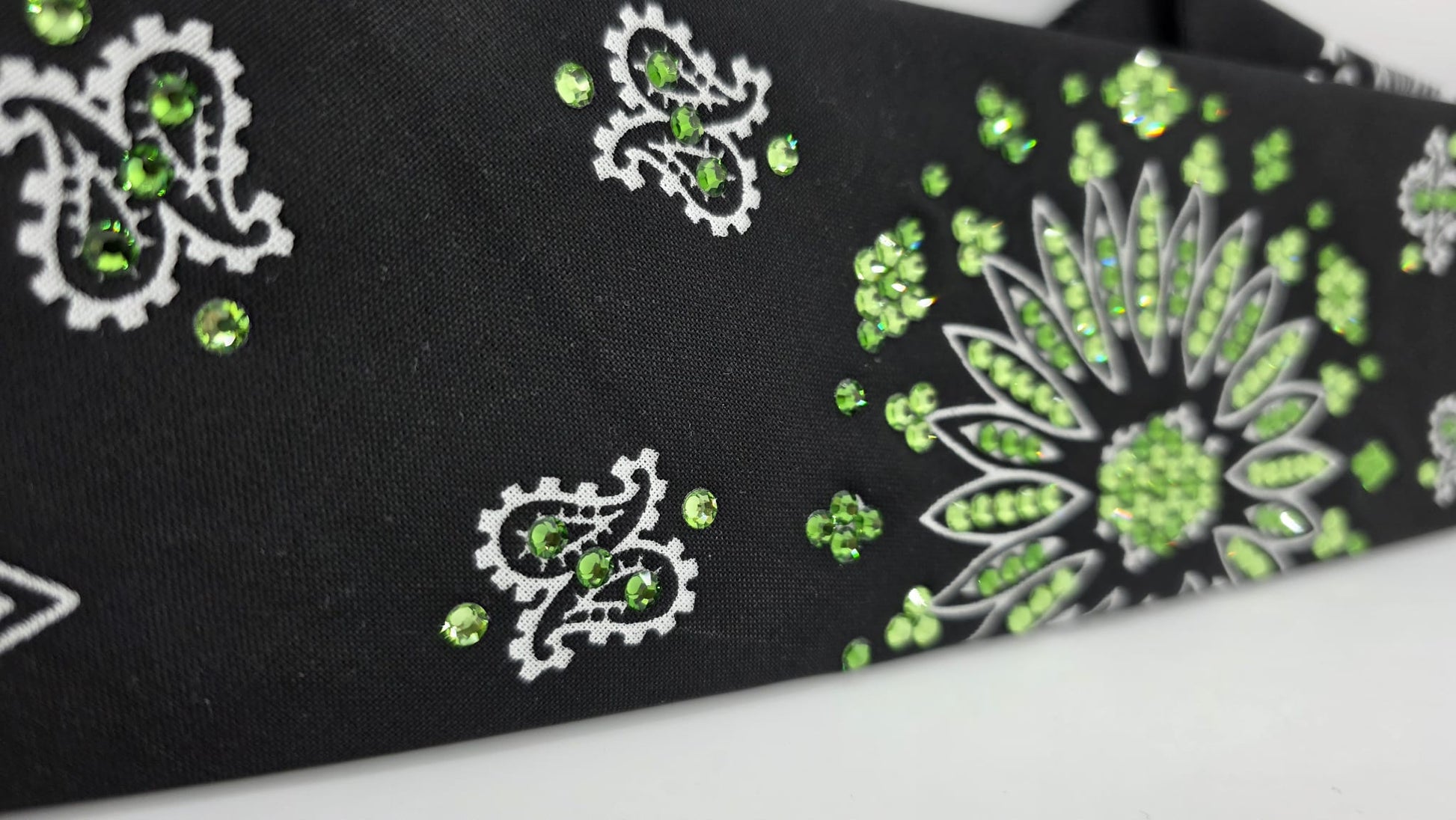 Black Paisley Bandana with Light and Dark Green Austrian Crystals (E60103)