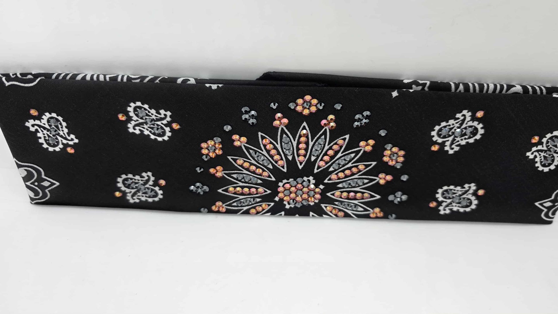 EXTRA BLING - Black Paisley Bandana with Lava and Black Austrian Crystals (sku6420)