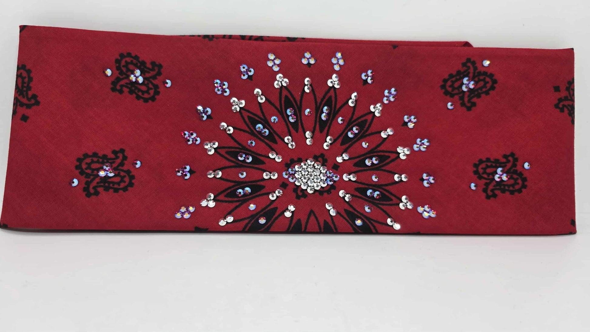 EXTRA BLING - Large Red Paisley Bandana with Red Shimmer and Chrome Austrian Crystals (sku6410)