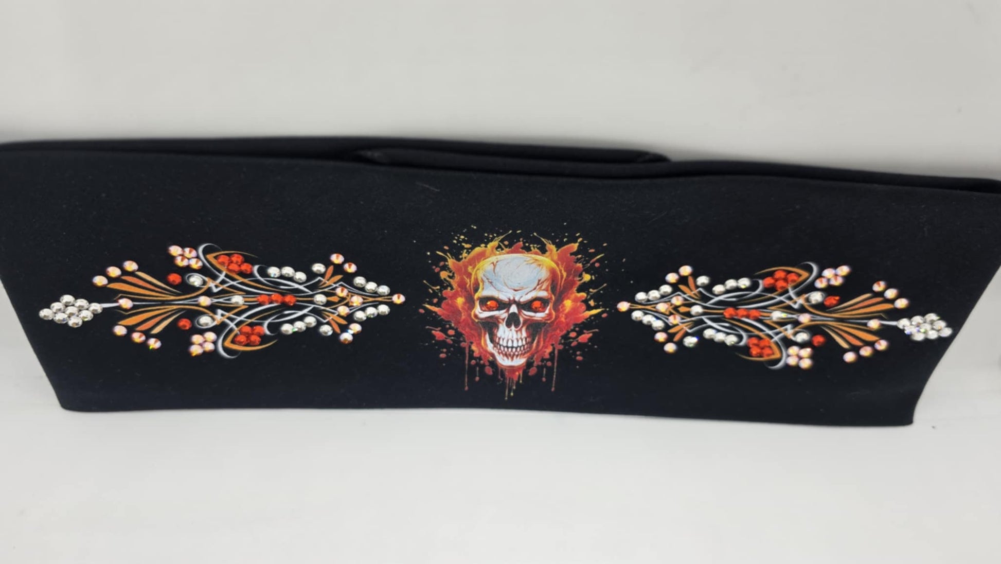 EXTRA BLING - Orange Skull and Pinstripes Bandana with Orange, Orange Shimmer and Diamond Clear Austrian Crystals (sku6379)