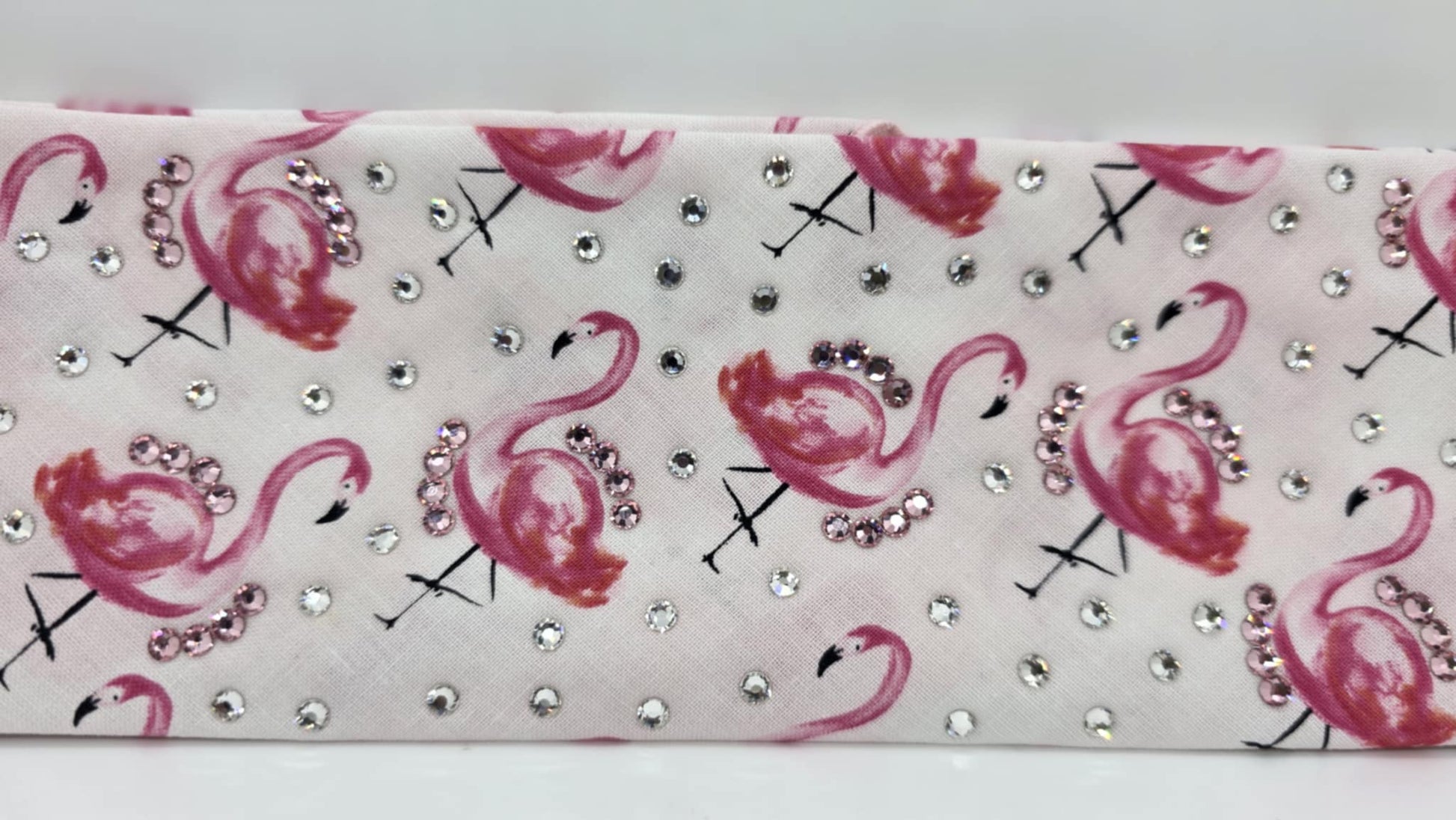 EXTRA BLING - Pink Flamingo Bandana with Pink and Diamond Clear Austrian Crystals (sku6378)