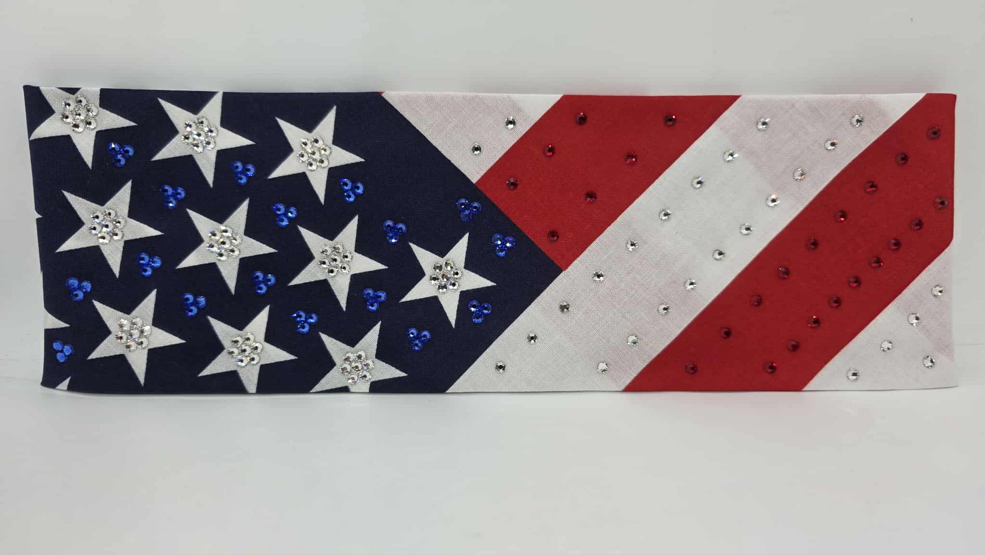 EXTRA BLING - Stars and Strips Bandana with Red, Blue and Diamond Clear Austrian Crystals (sku6400)