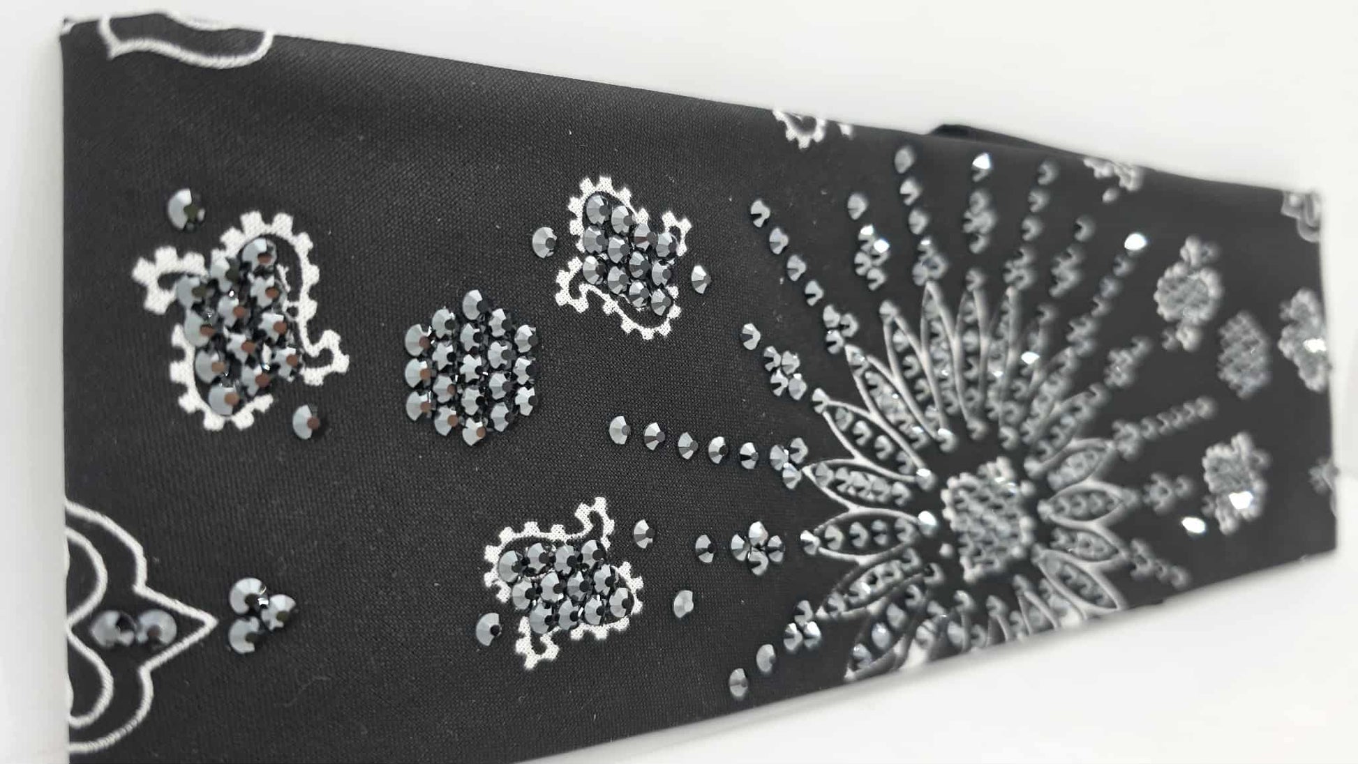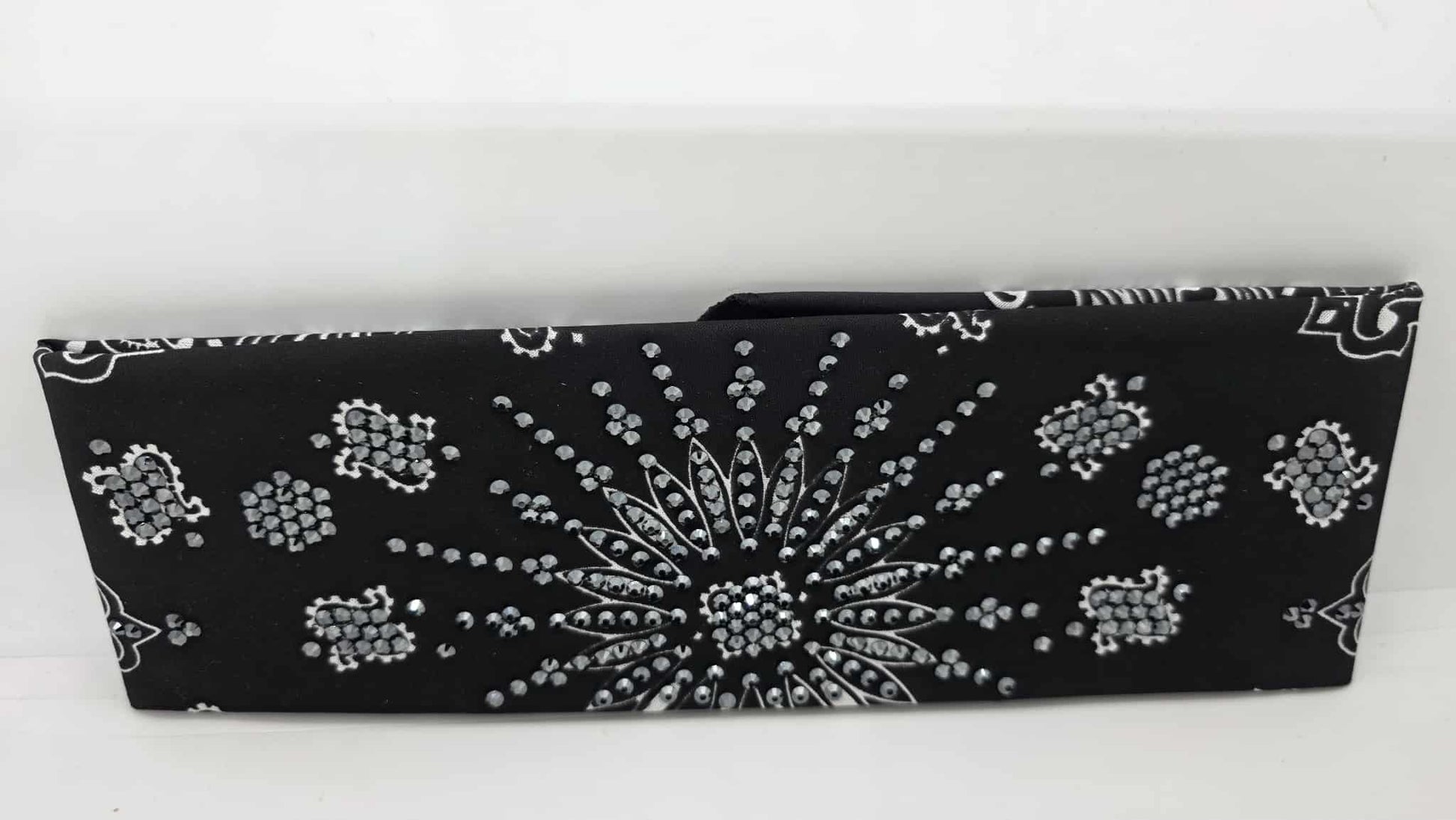 LeeAnnette Black Paisley Bandana with Black Austrian Crystals (sku40108)