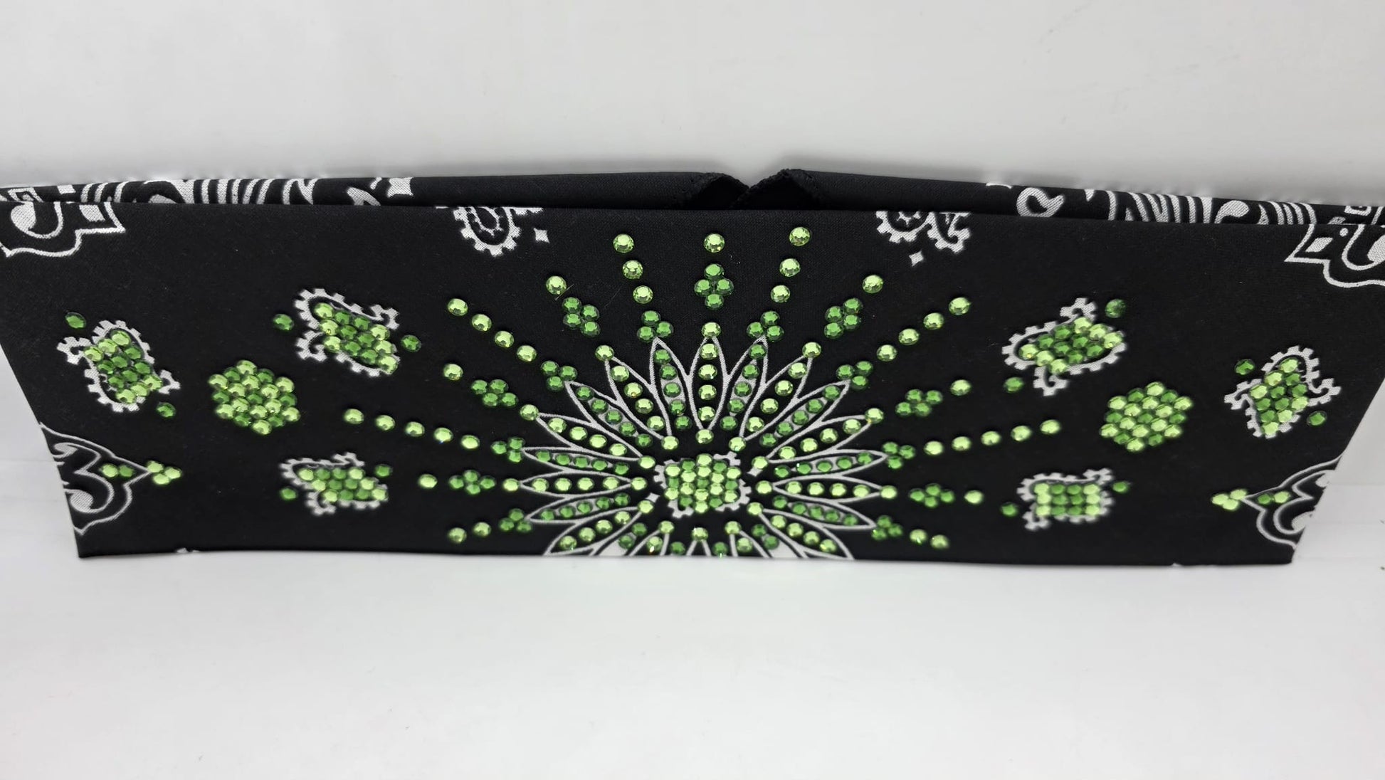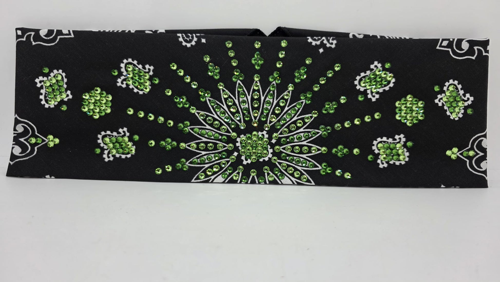 LeeAnnette Black Paisley Bandana with Light and Dark Green Austrian Crystals (L40204)