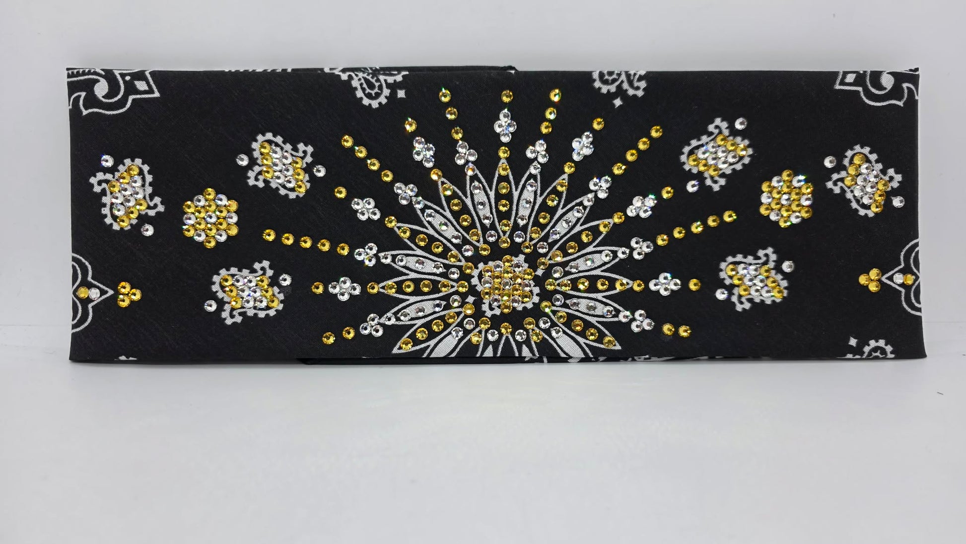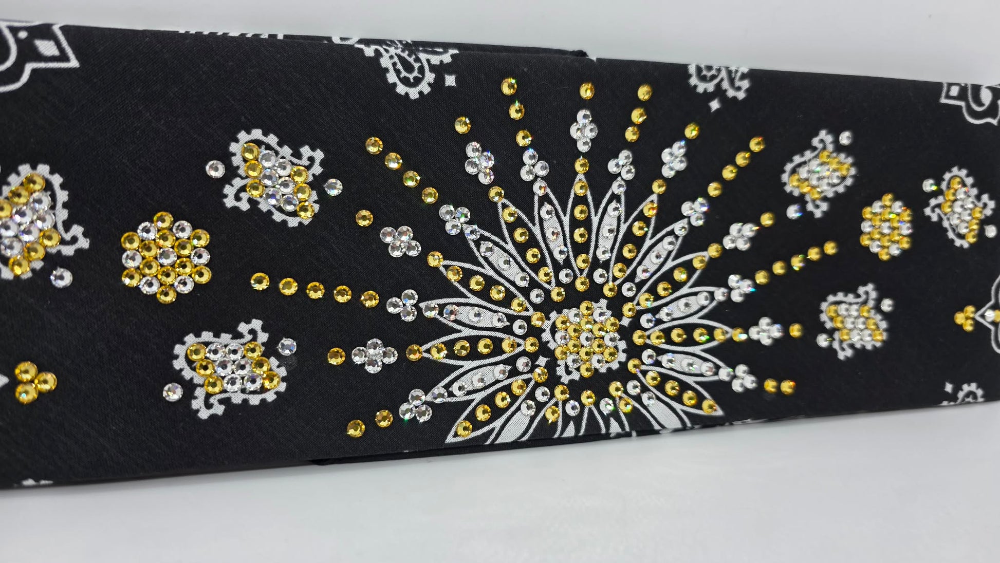 LeeAnnette Black Paisley Bandana with Light Topaz and Diamond Clear Austrian Crystals (L40212)