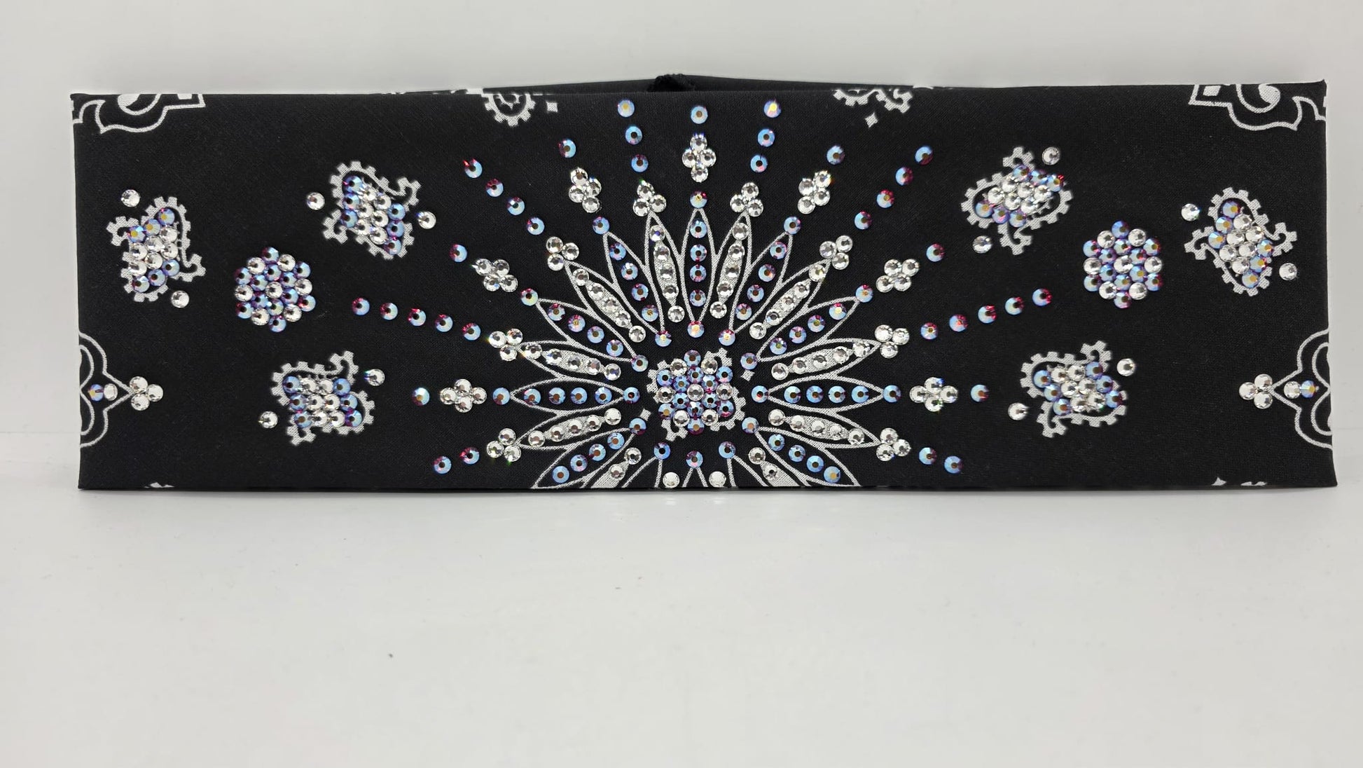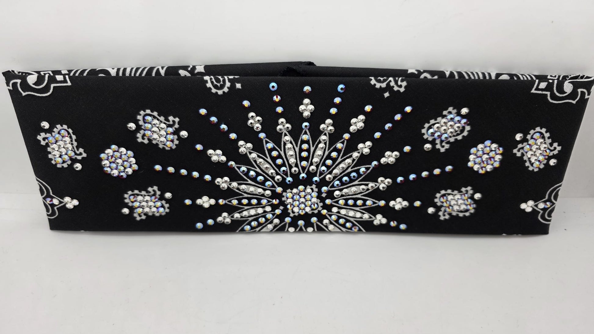 LeeAnnette Black Paisley Bandana with Red Shimmer and Diamond Clear Austrian Crystals (L40200))
