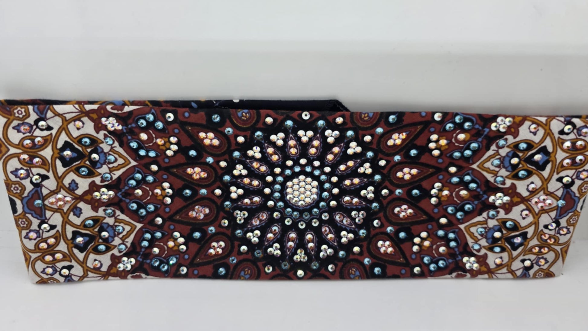 The LeeAnnette Rust Indian Bandana is a masterful blend of artistry and quality, featuring over 300 meticulously placed Austrian Crystals in shades of Aqua, Sun Shimmer, and Aurora Borealis. These crystals bring a captivating sparkle that beautifully highlights the intricate paisley pattern, making the bandana a standout accessory. Crafted from premium materials, it offers both elegance and resilience, designed to withstand regular wear without losing its charm. Its versatile construction supports both machine and hand washing, ensuring easy care without compromising its luxurious appeal. Ideal for those who appreciate expert craftsmanship and enduring style, this bandana adds a sophisticated accent to any ensemble.