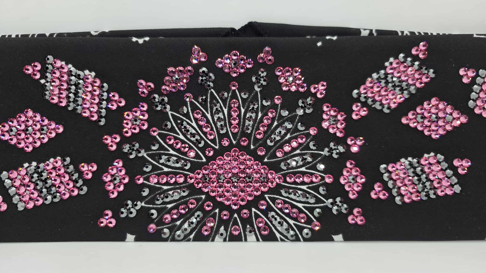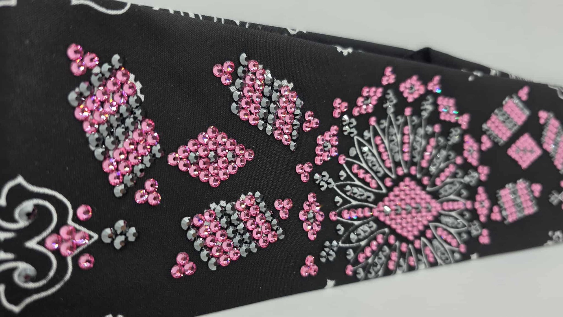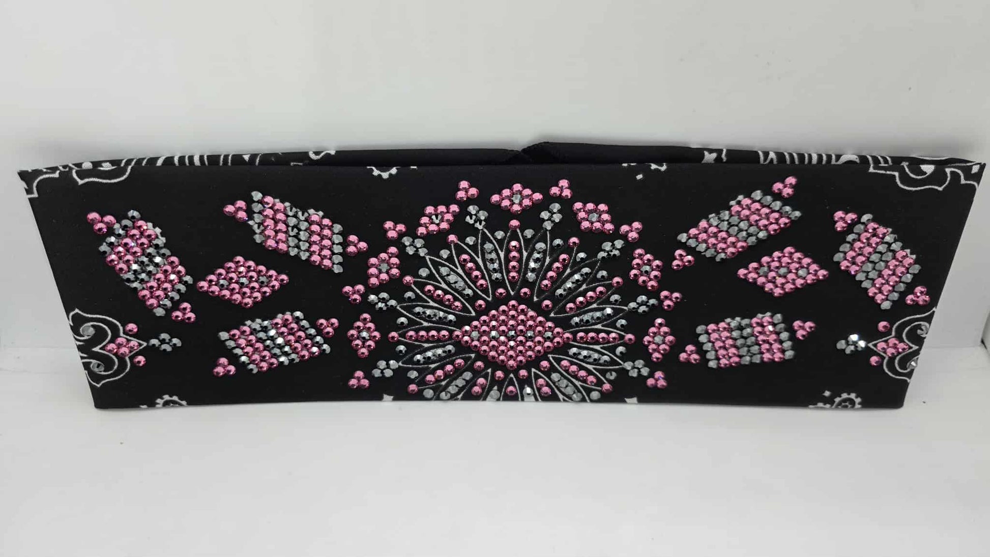 Super LeeAnnette Black Paisley Bandana with Black and Rose Austrian Crystals (sku40107)