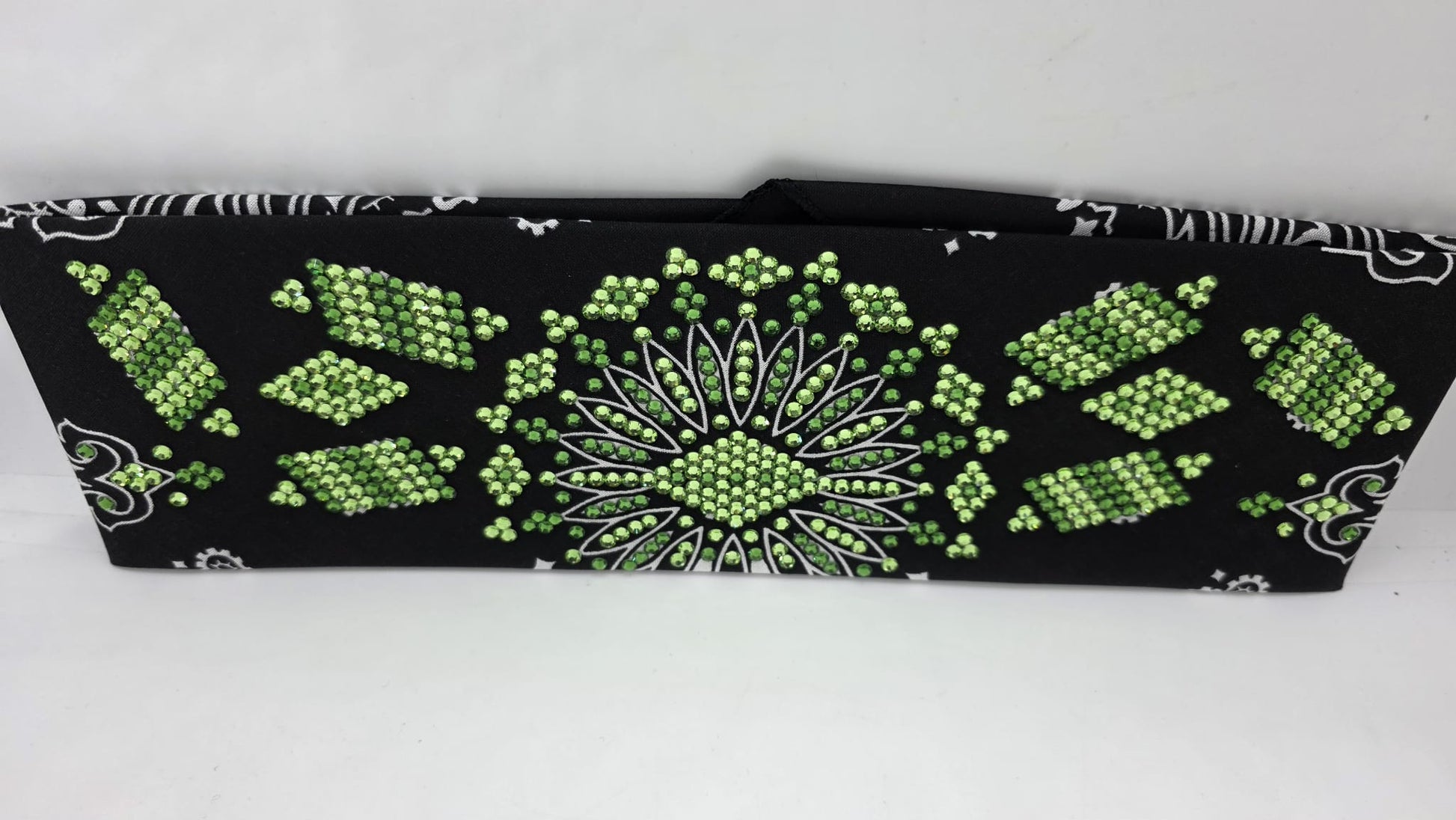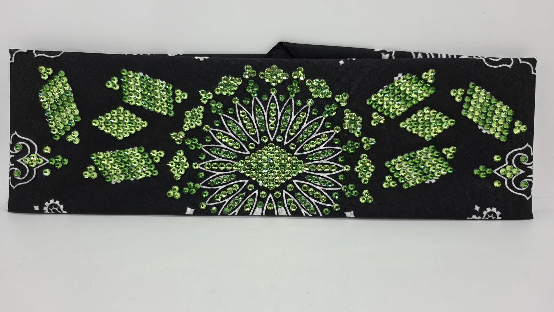 Super LeeAnnette Black Paisley Bandana with Light and Dark Green Austrian Crystals (S480102)