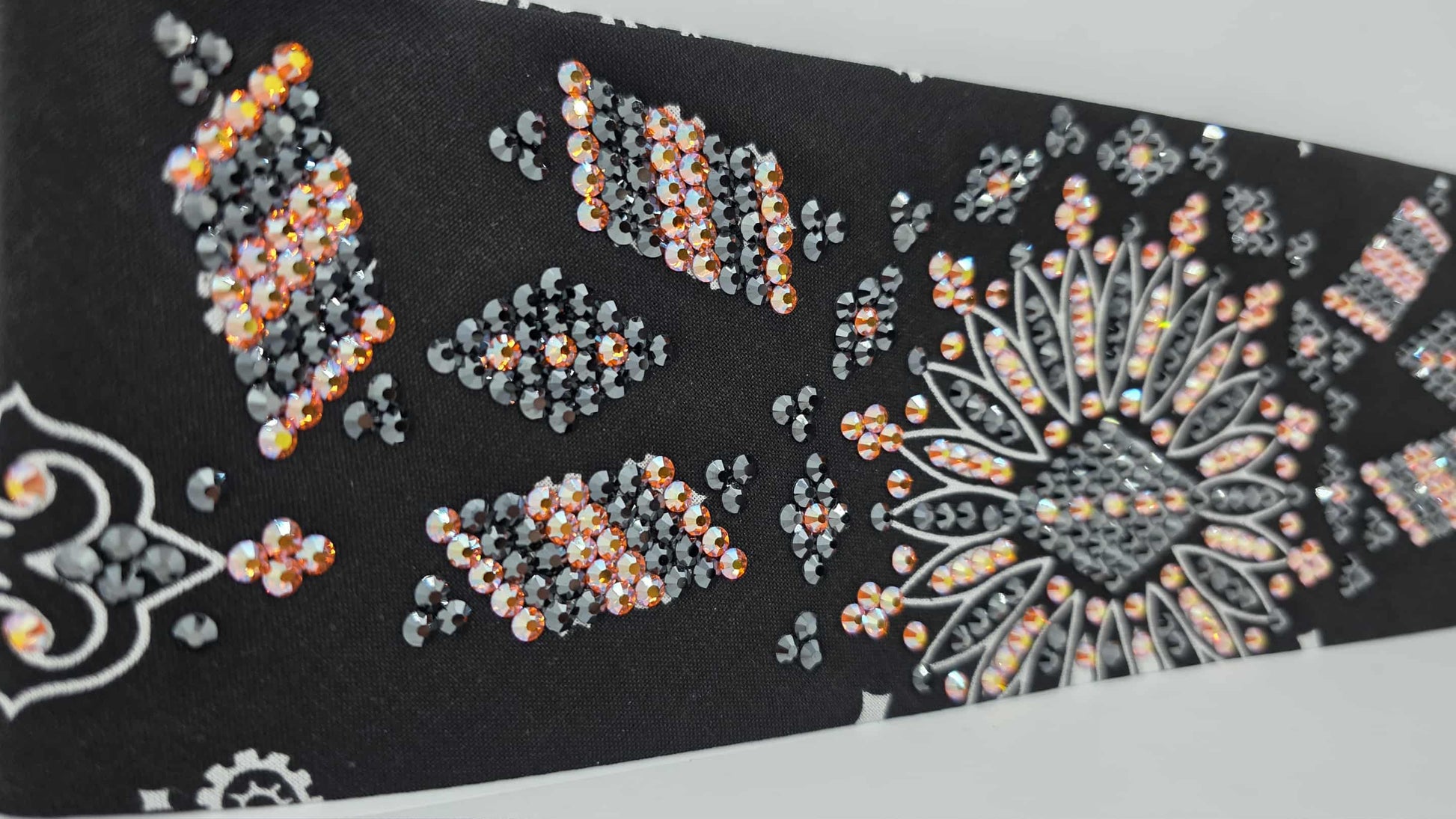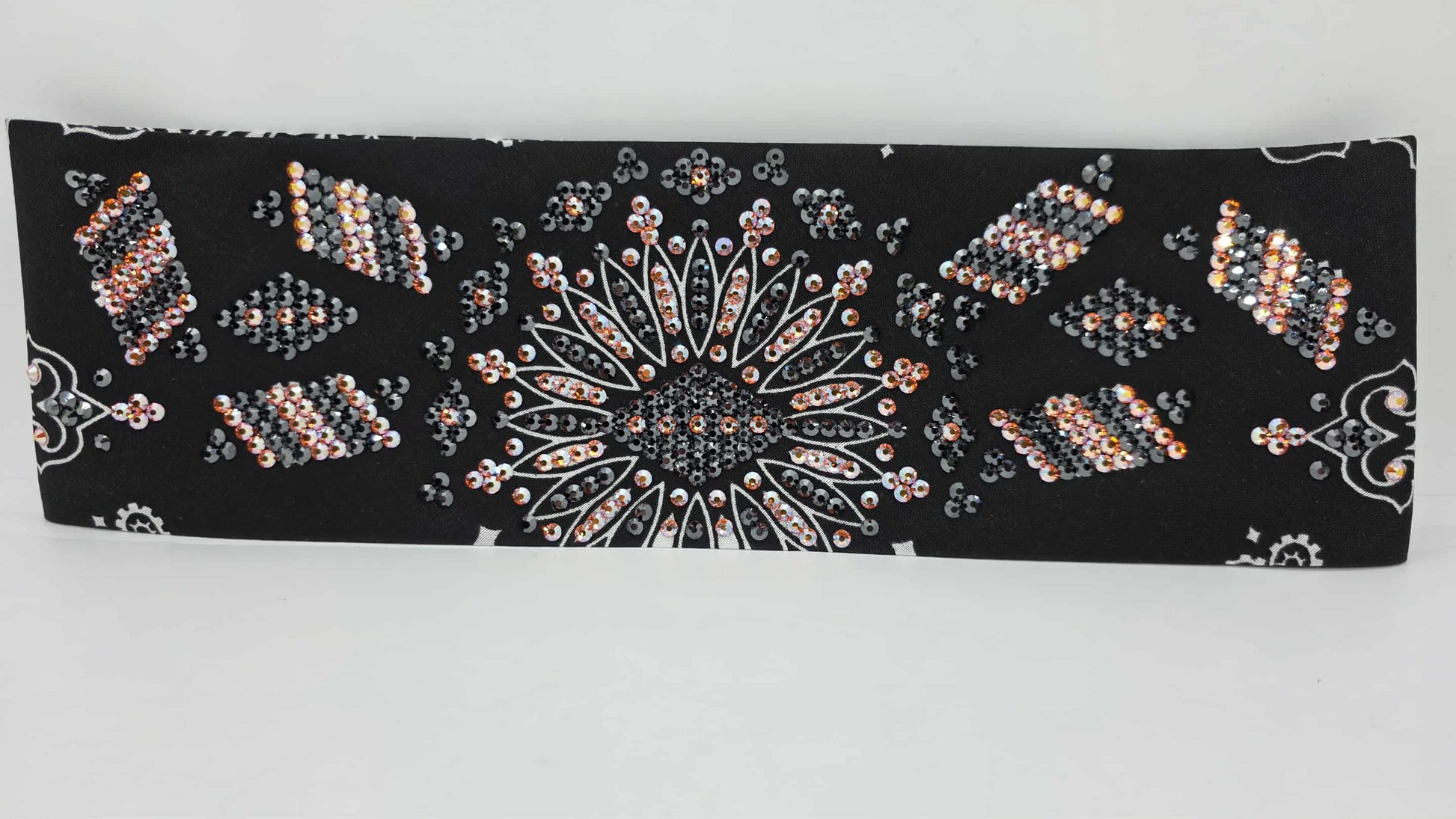 Super LeeAnnette Black Paisley Bandana with Sun Shimmer and Black Austrian Crystals (Sku4486)