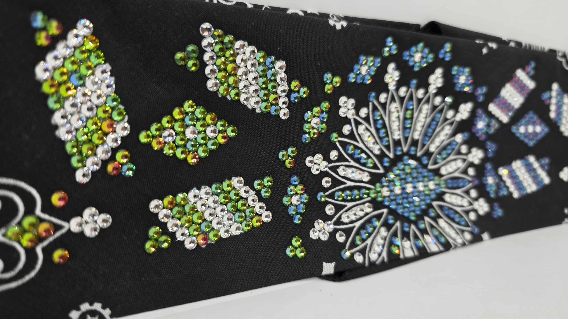 Super LeeAnnette Black Paisley Bandana with Vitrail and Diamond Clear Austrian Crystals (Sku4488)