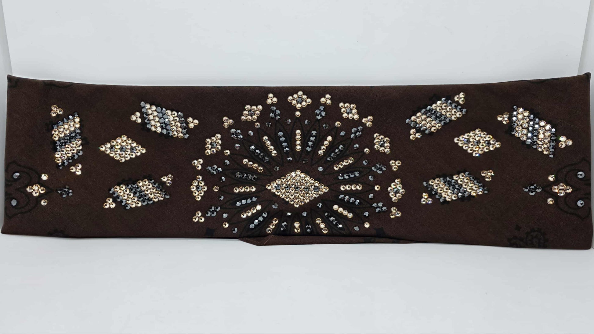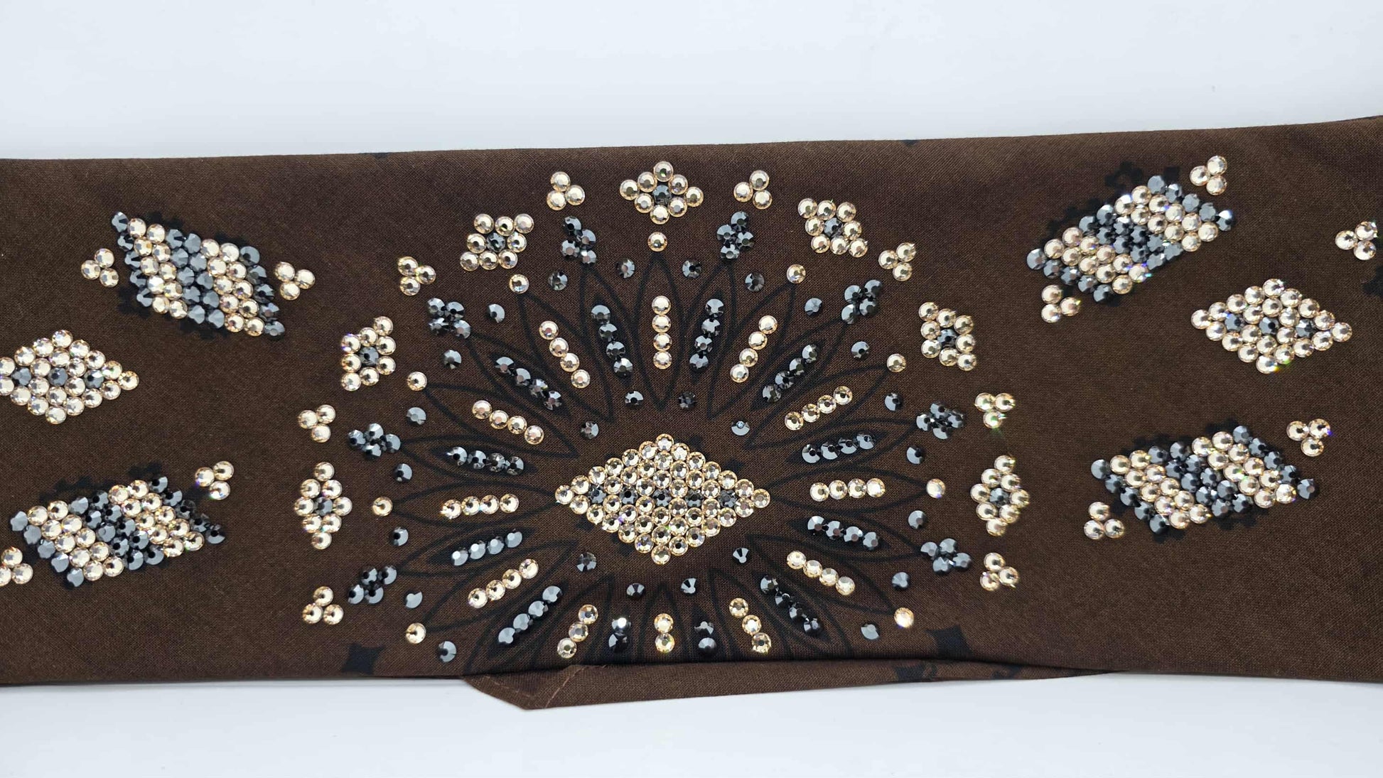 Super LeeAnnette Large Brown Bandana with Honey and Black Austrian Crystals (sku40121)