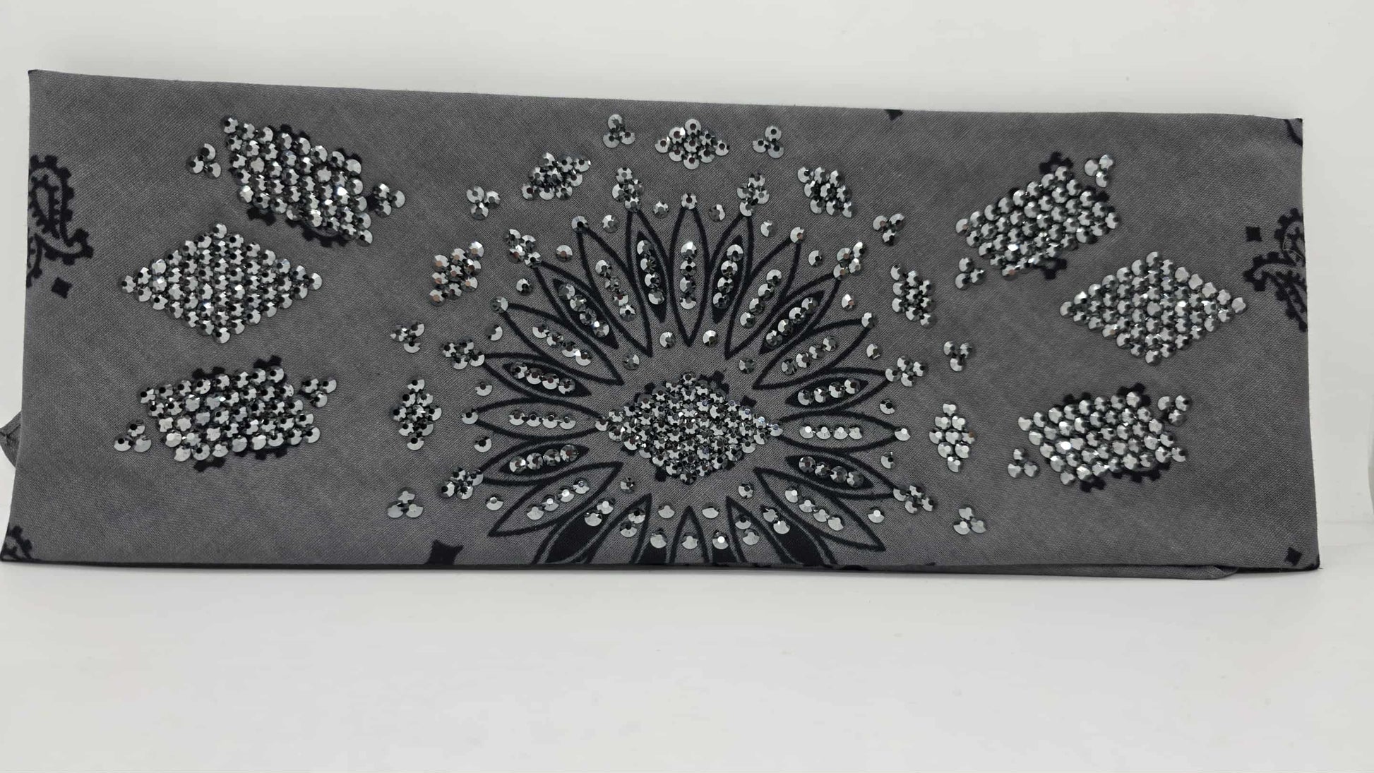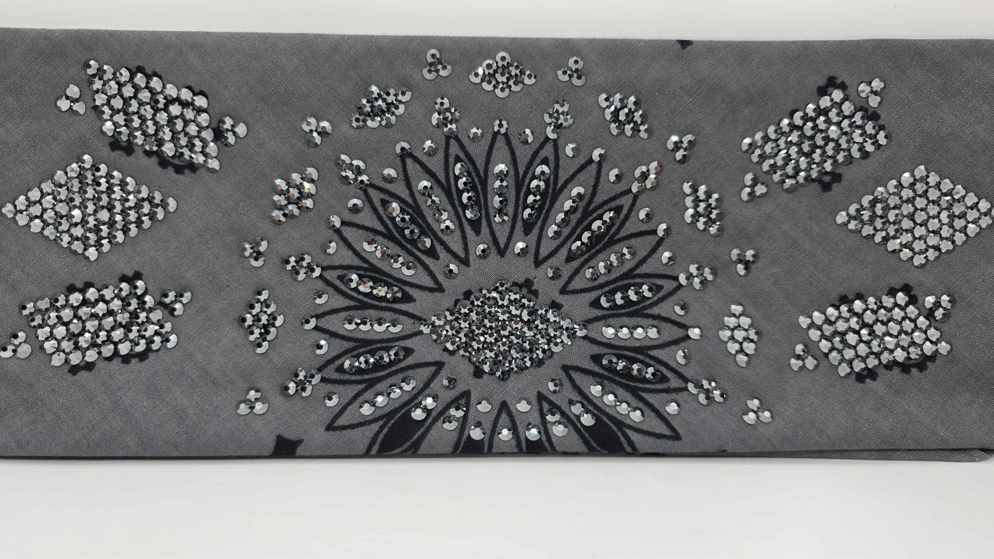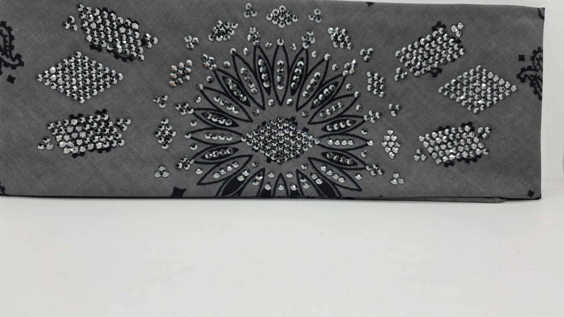 Super LeeAnnette Large Grey Bandana with Black Austrian Crystals (sku40114)