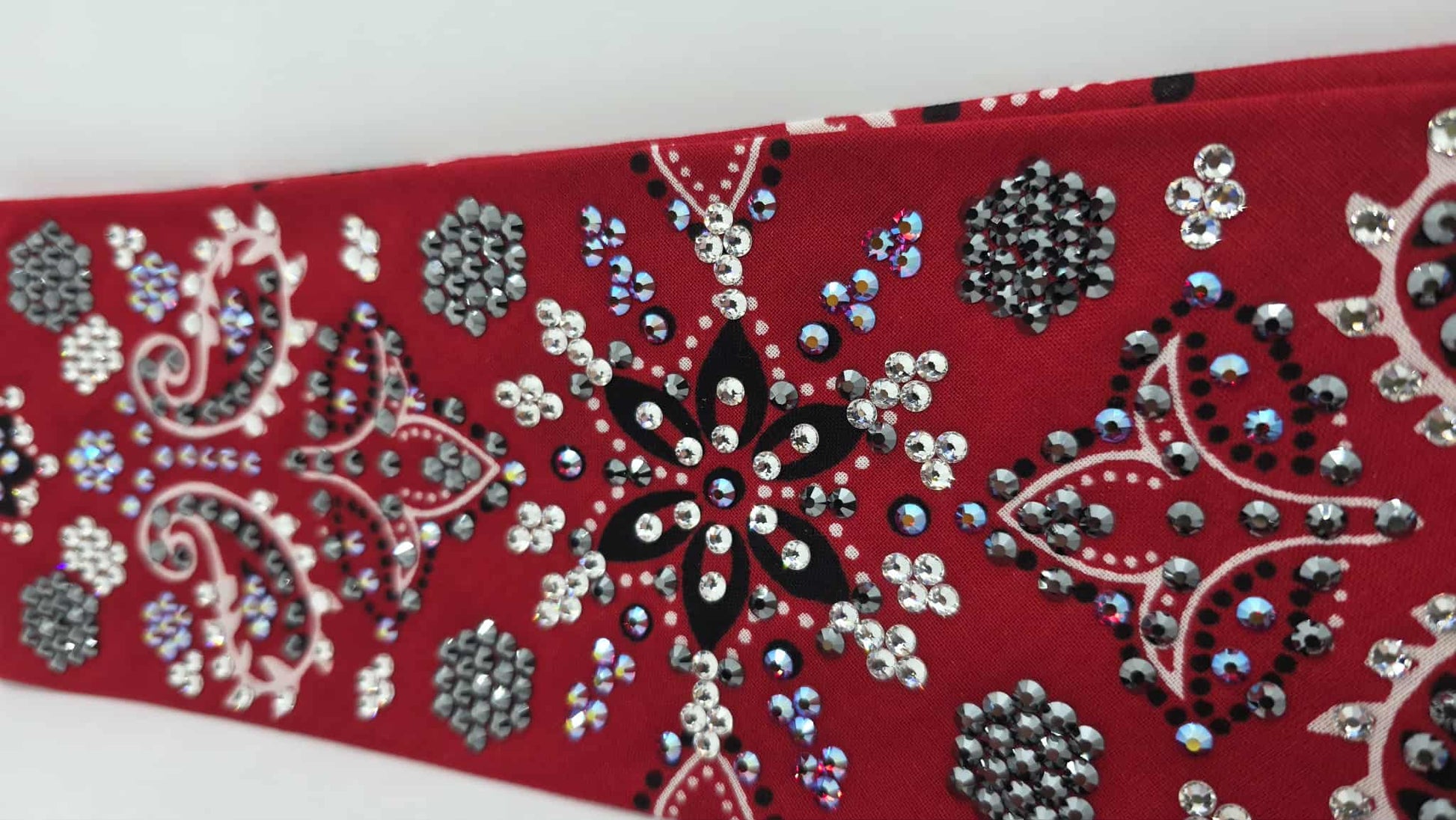 Super LeeAnnette Large Red Flower Bandana with Red Shimmer, Black and Diamond Clear Austrian Crystals (sku40124)