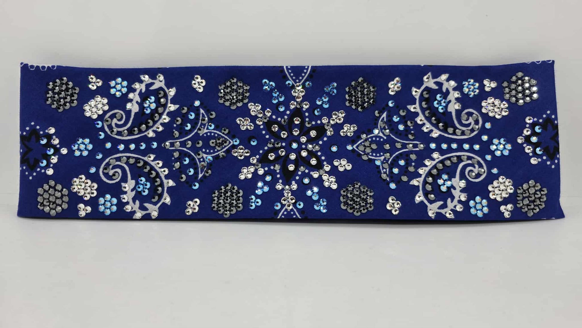 Super LeeAnnette Large Royal Blue Flower Bandana with Blue Shimmer, Black and Diamond Clear Austrian Crystals (sku40126)
