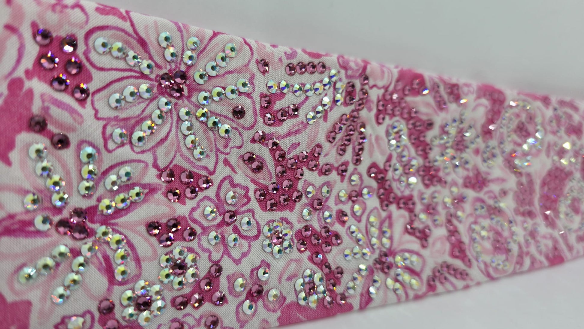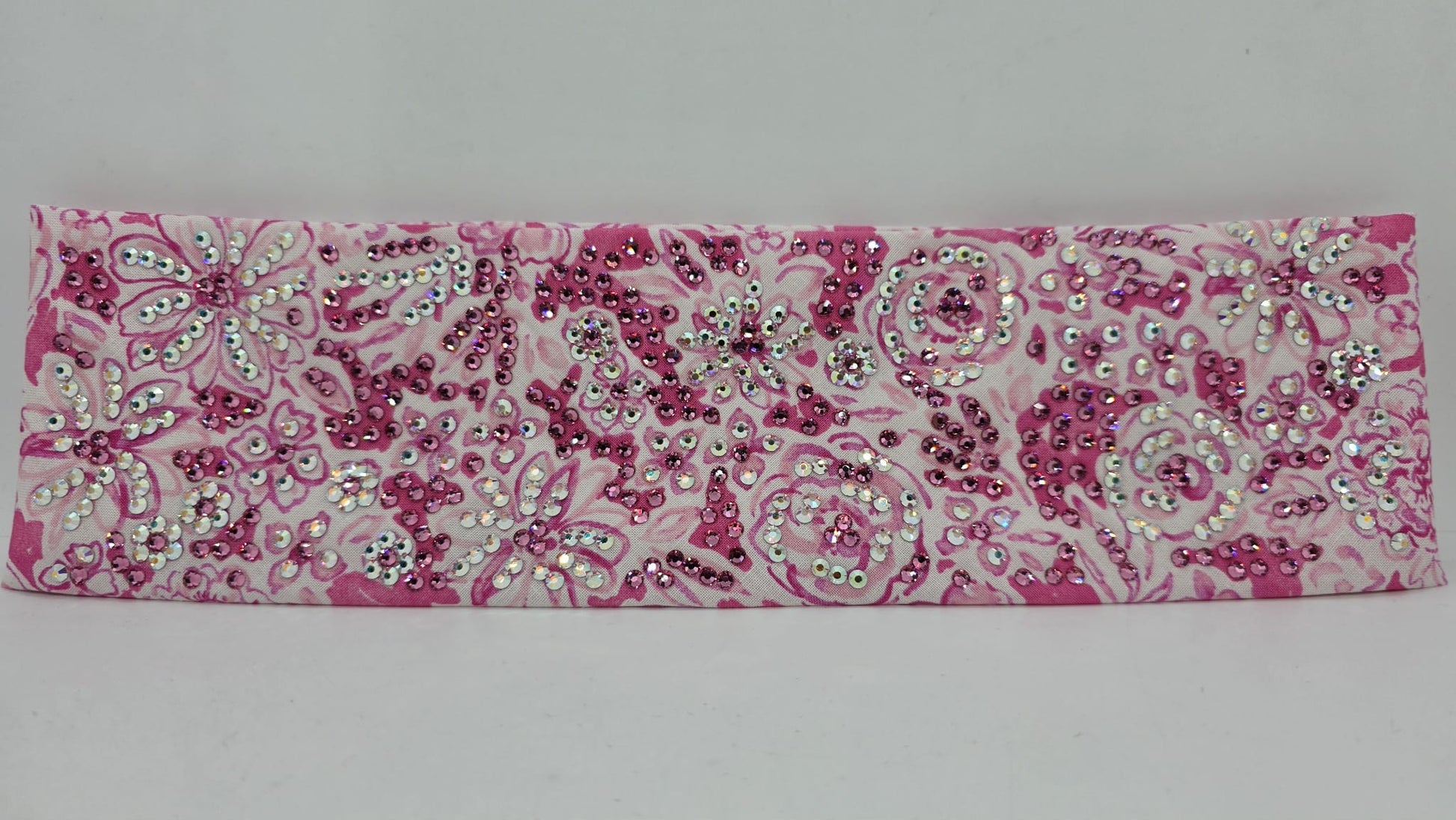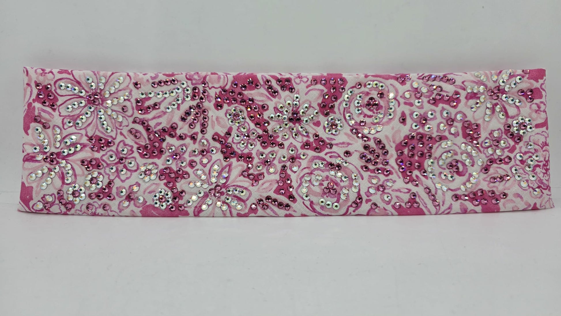 Super LeeAnnette Pink Flowers Bandana with Rose and Aurora Borealis Austrian Crystals (sku40147)