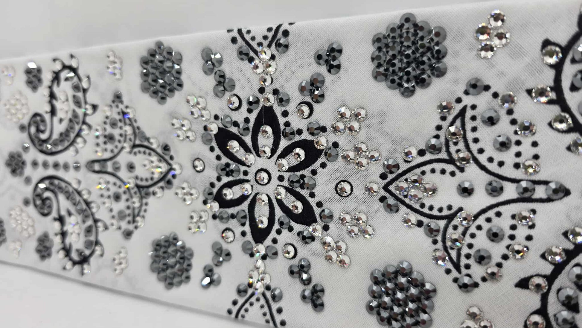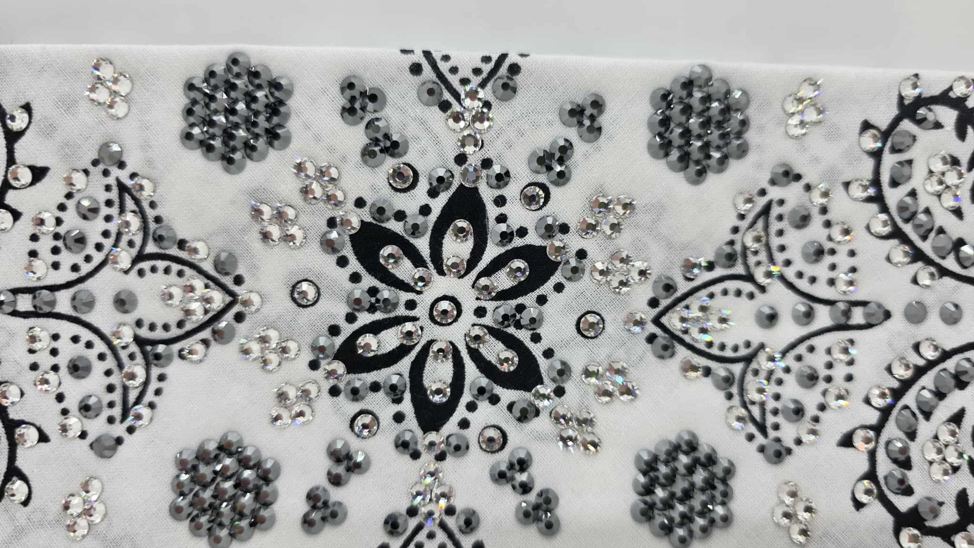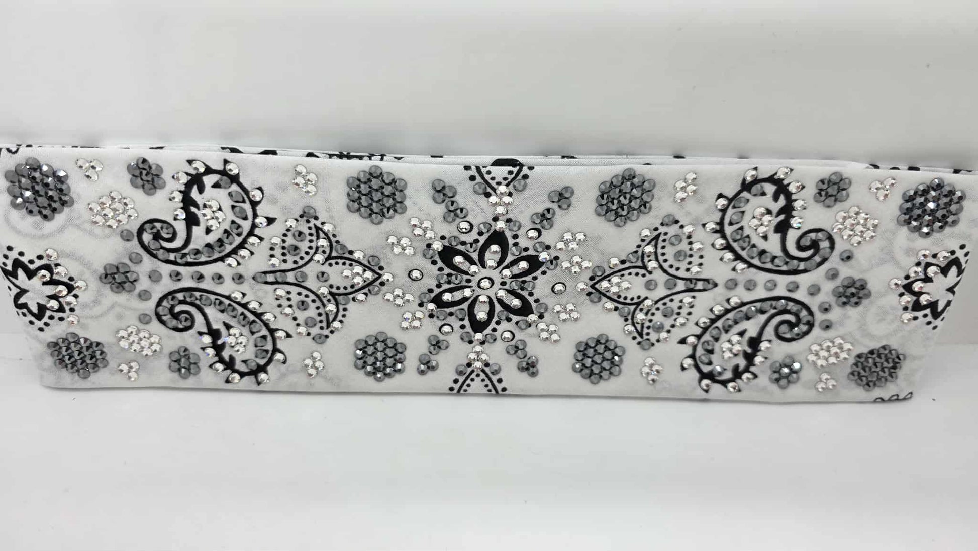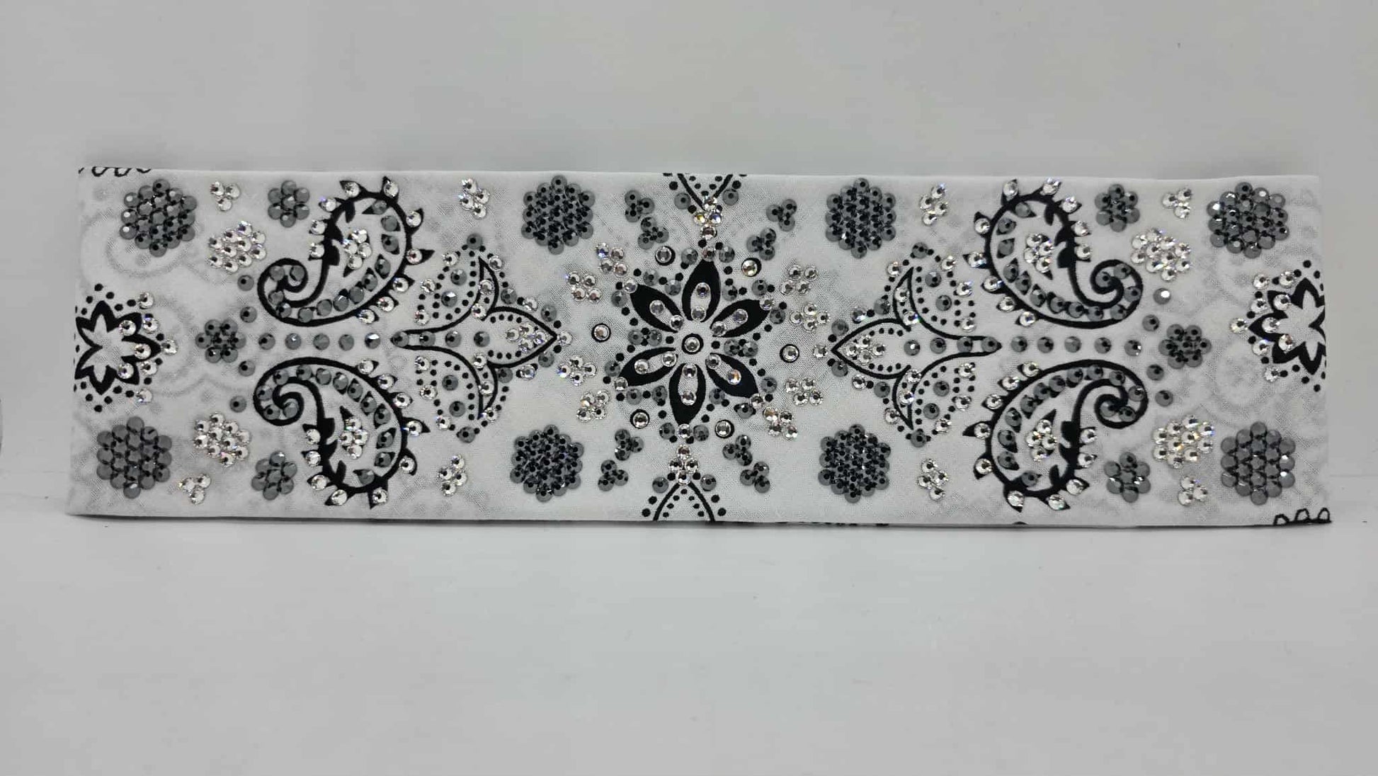 Super LeeAnnette White Black Flower Bandana with Black and Diamond Clear Austrian Crystals (sku40106)